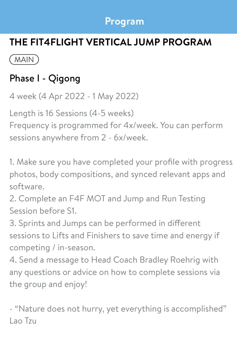 I’ve tried to put some of my coaching experience in strength and conditioning, alongside my own training to give you a full training and learning experience at your fingertips for a fraction of the price! Users receive in-depth description for each section Jumps, Sprints, Lifts and Holds (finishers). You can see exercises and adaptations are suggested, as well as sets, reps and session to session progressions. The FIT4FLIGHT full experience can then still be accessed through the FIT4FUNCTION app!